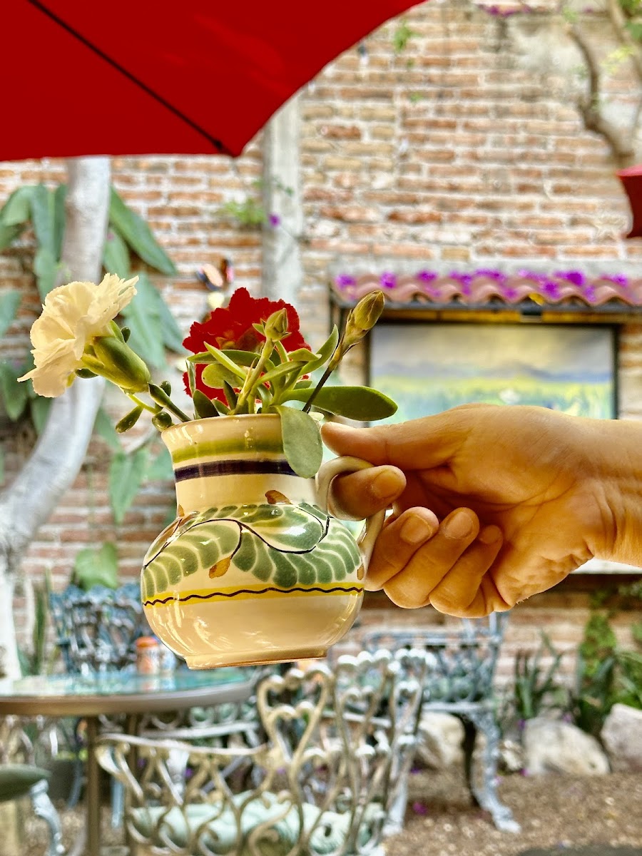 Step inside and be transported to a lush courtyard adorned with stunning original artwork and vibrant textiles, creating a captivating atmosphere that beckons you to linger. As you settle into the inviting surroundings, you’ll find yourself surrounded by a tapestry of color and creativity, making it the perfect backdrop for a leisurely meal or an afternoon chat with friends.
